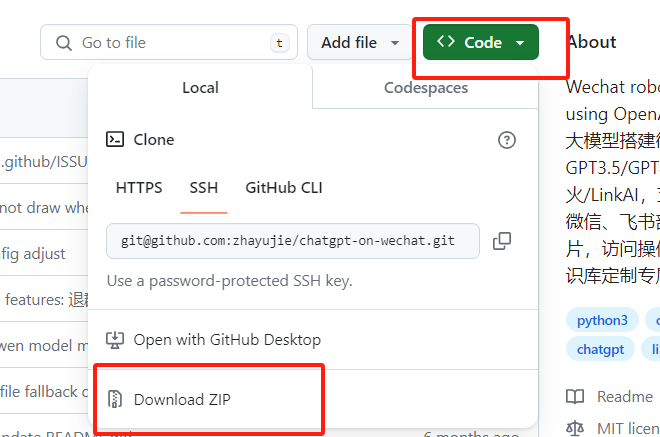 1 | git clone https://github.com/zhayujie/chatgpt-on-wechat |