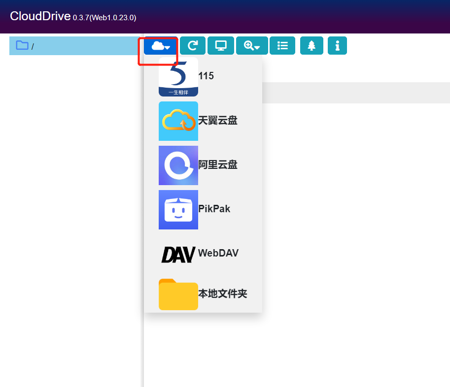 利用注册账号进行登录后,可以看到页面支持挂载的网盘