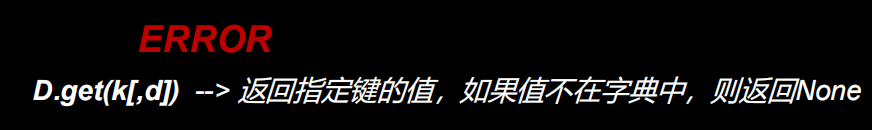 集合类型,不是序列类型,因此没有索引下标的概念,更没有切片的说法。但是,与 list 类似,字典采用把相应的键放入方括号内获取对应值的
