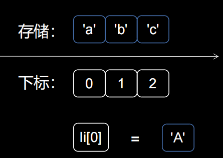从0开始为它的每一个元素顺序创建下标索引,直到总长度减一。要访问它的某个元素,以方括号加下标值的方式即可。注意要确保索引不越界,一旦访问的