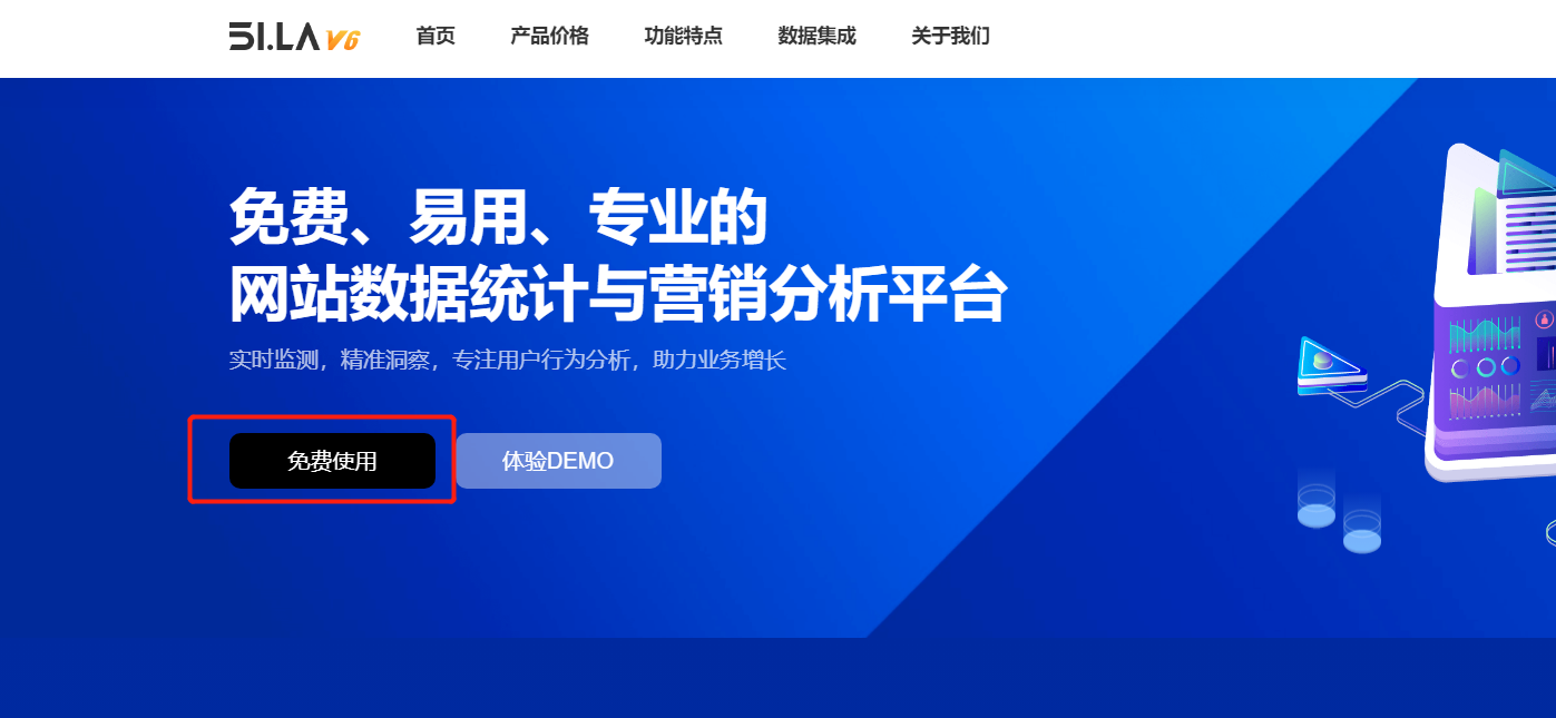 首先我们想使用统计就需要注册一个账号,51LA流量统计链接:https://v6.51.la/