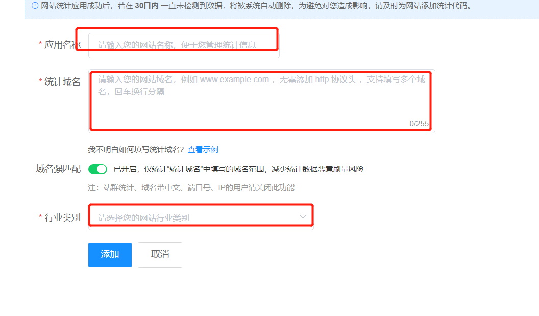 然后给你的应用写一个名称(这个不用纠结,随便写一个就好了),然后将你的域名填写进去,行业类别根据你的网站性质填写就好了,博主是写的论坛博客/IT,当然也同样不用纠结,最后点击添加